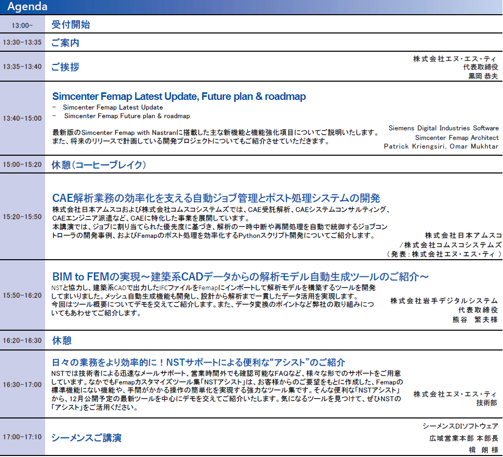 | 追記事項 | ※アジェンダは予告なく変更する場合がありますのでご了承下さい。 | |