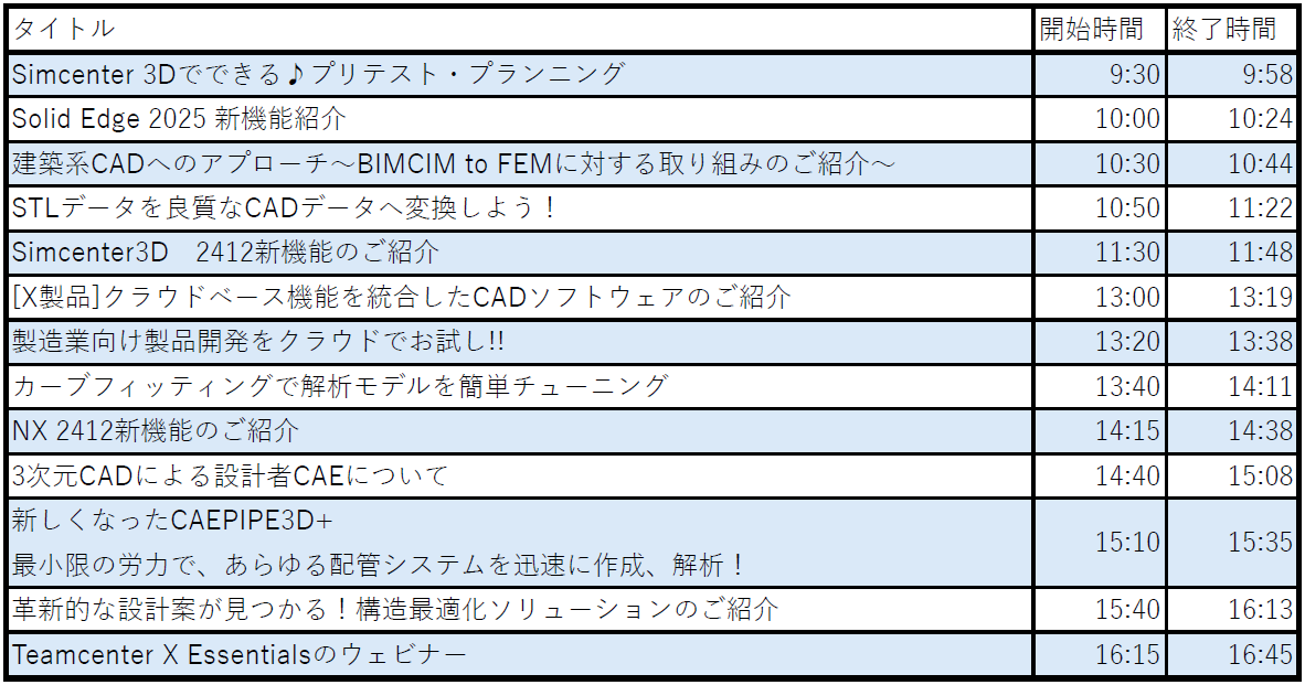 タイムテーブル![]() 入退室自由。 興味があるセミナーを、自由にご視聴ください。 |